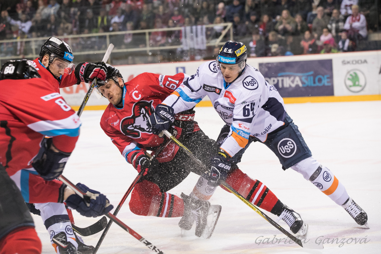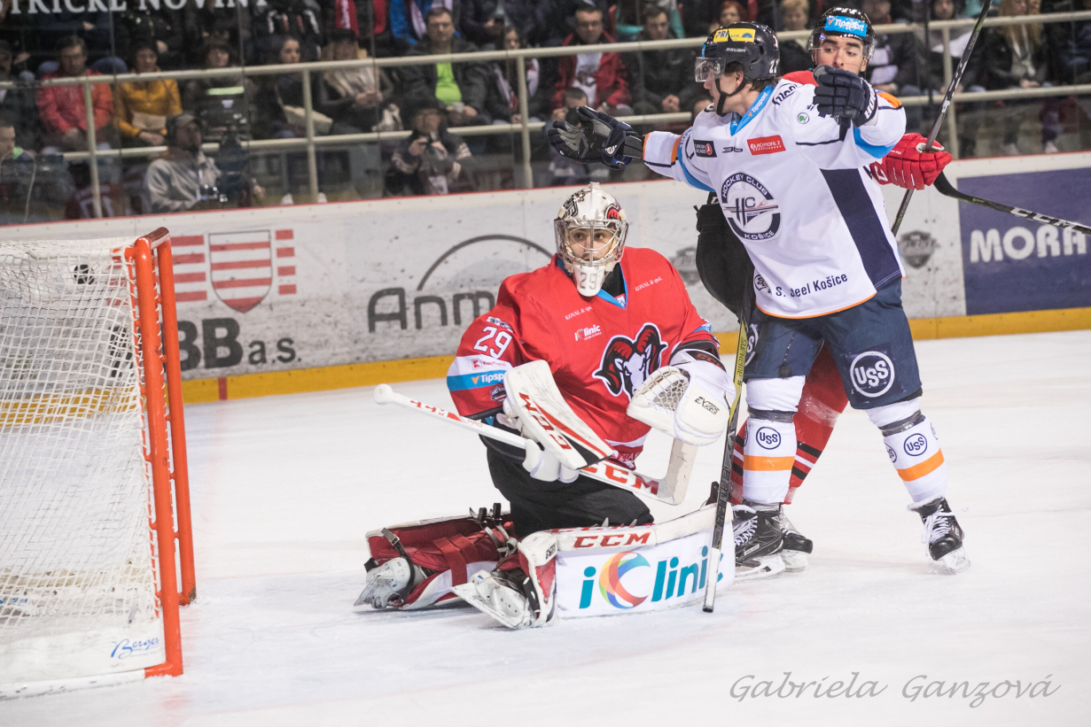 The initial minutes of the second period belonged to Košice hockey-players, who asked for some room in their period of attack. Even though the Steelers were combining it for some time, Lukáš was not threatened among his three poles. This status remained unchanged also at the end of the 24th minute, Nagy processed the pass from Miklík, but the puck hit the blade, so the shot was lost. We could see the pressure of Košice also several seconds later. We might mention Šoltés, but his shot ended-up right on Lukáš. At the end of the regular playtime also Banská Bystrica tried it. But several shots were well blocked and others were reliably covered by Lundström. So after 40 minutes we still did not a goal.