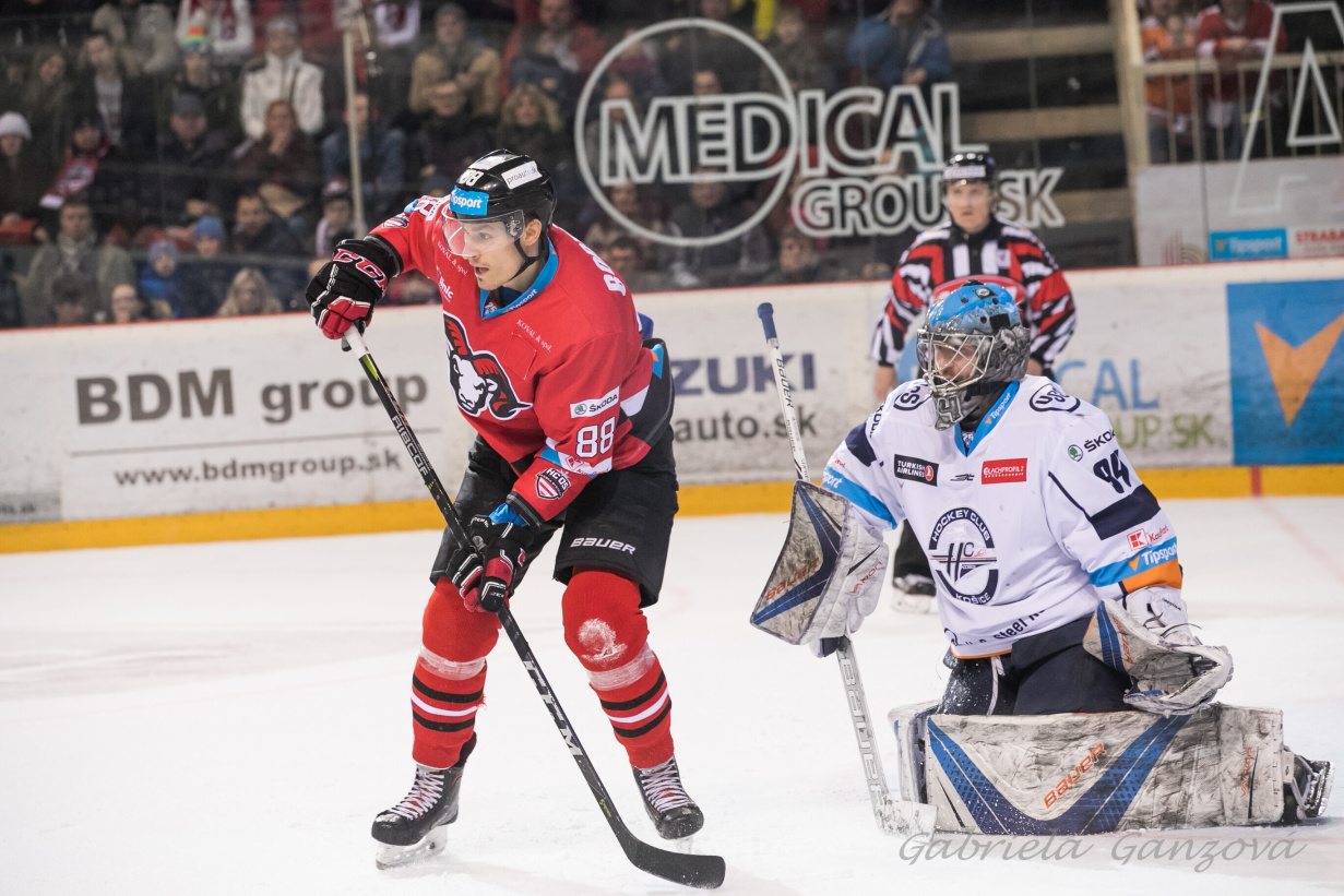 The third period was the most active one, which was definitely enjoyed by both teams of fans. At the end of the 41st minute Hohmann sent a good pass to the barrier, he found Bartánus, but he sent the puck to guarding Lundström. Six minutes later also Lukáš had to pay attention, he was facing Hričina's chance. He got to the free puck, knitted it in front of the net, but did not manage to score and overcome the Czech goalman in service of Banská Bystrica. In the 55th minute during the power play Spilar had his individual escape, he tried to score, but also this time there was no goal. Also Brittain's intention was very good, but he shot the puck to the pole only. Then Ďatelinka received the puck, but he closely missed the area of the three poles. So the three periods were not enough to decide the match.