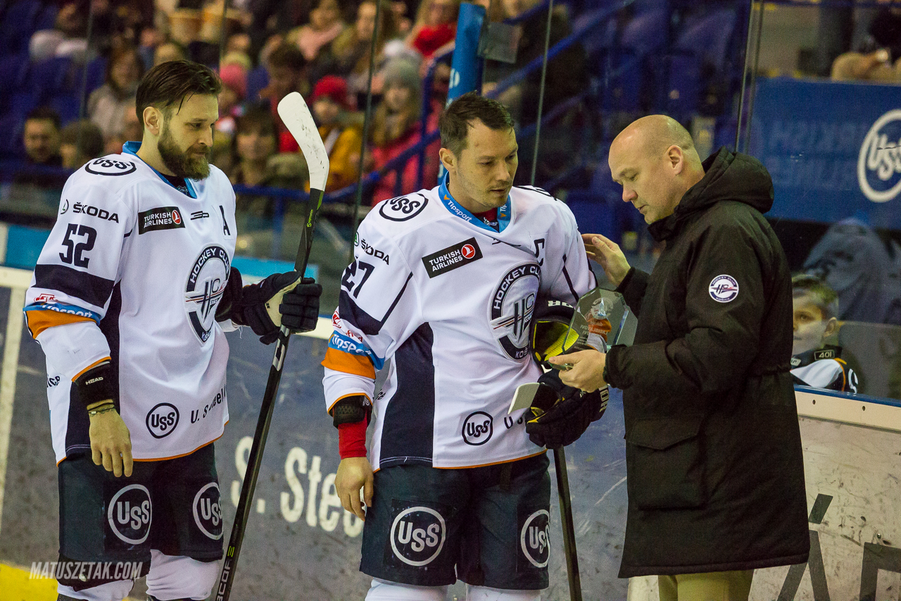 Ešte pred začiatkom samotného zápasu sme privítali našich olympionikov v drese HC Košice ako sa patrí. Náš kapitán Ladislav Nagy a krídelník Marek Hovorka prebrali z rúk výkonného riaditeľa Rastislava Rusiča pamätné plakety za vzorné reprezentovanie značky HC Košice vo svete. Chlapcom za ich predvedené výkony v Pjongčangu ešte raz ďakujeme!