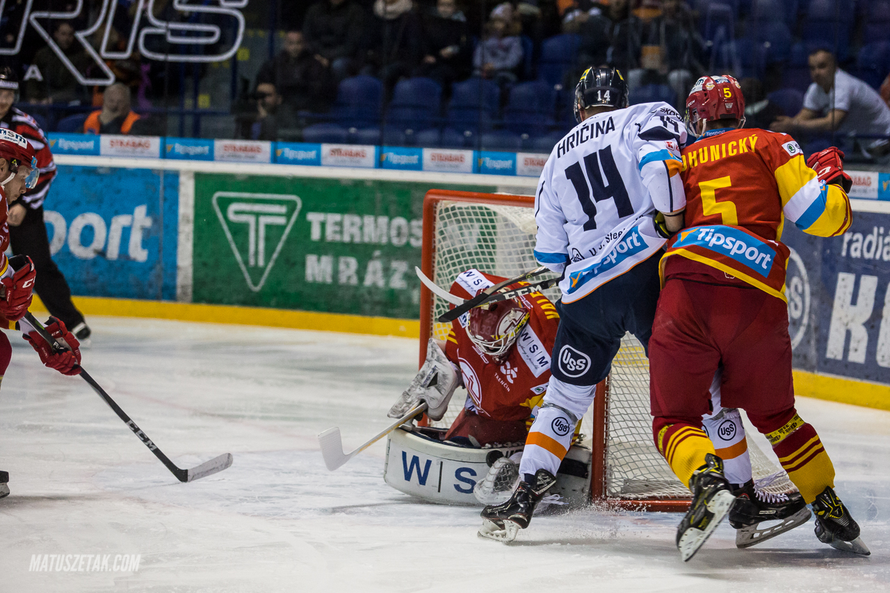 Do stretnutia vstúpili lepšie Košice. Tie sa už v prvej minúte dostali do dvoch veľkých šancí, keď puk najskôr Nagyovi takmer na čepeľ nešťastne prikopol jeden z obrancov Dukly. Následne priletel od mantinelu zaujímavý puk pred bránkovisko, pričom hostia mali šťastie, že preskočil hokejky Hovorku i Boltuna. Na opačnej strane ľadovej plochy sme videli zakončenie od modrej čiary, po ktorom mal Vladislav Habal zakrytý výhľad. Ako posledný sa puku dotkol Pač, ktorý poslal Duklu do vedenia 1:0. Ešte pred prestávkou mohol vyrovnať Pacan, ktorý z nevýhodnej pozície poriadne vystrašil Valenta, avšak napokon stihol gólman puk vykopnúť. Pred prestávkou sa dostal pri bránkovisku do šance aj Hričina, ktorý našiel lapačku pripraveného brankára. Po 20 minútach hry tak platil stav 0:1.