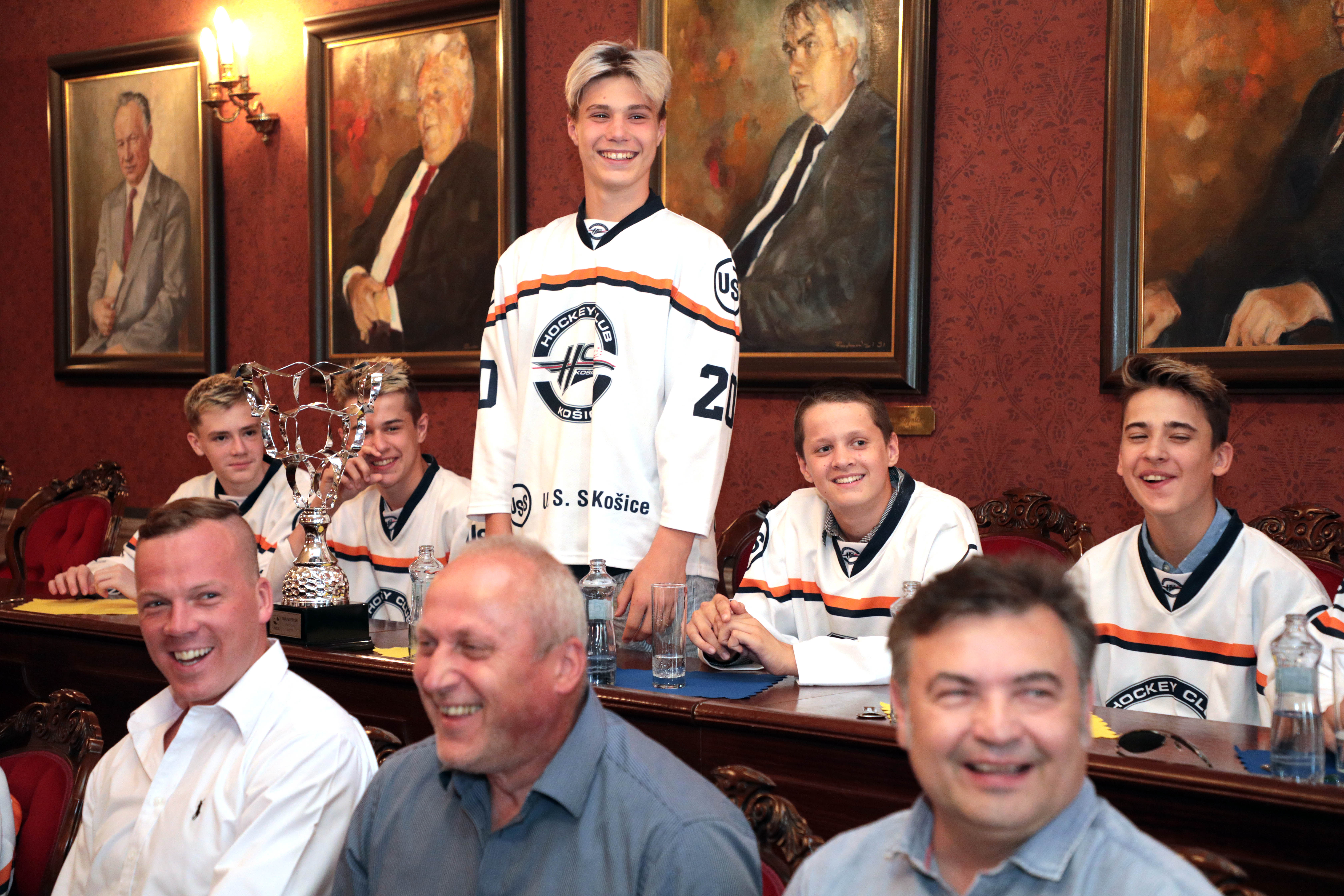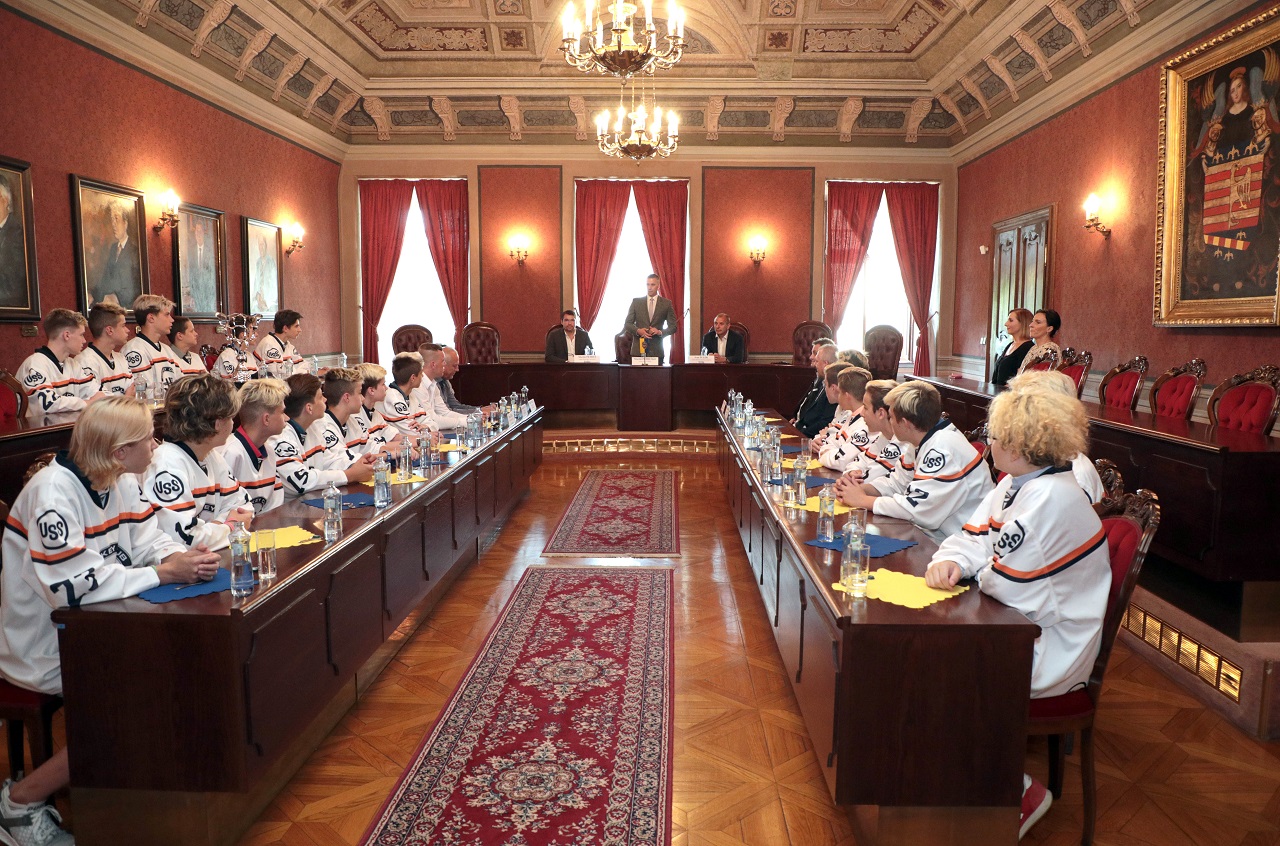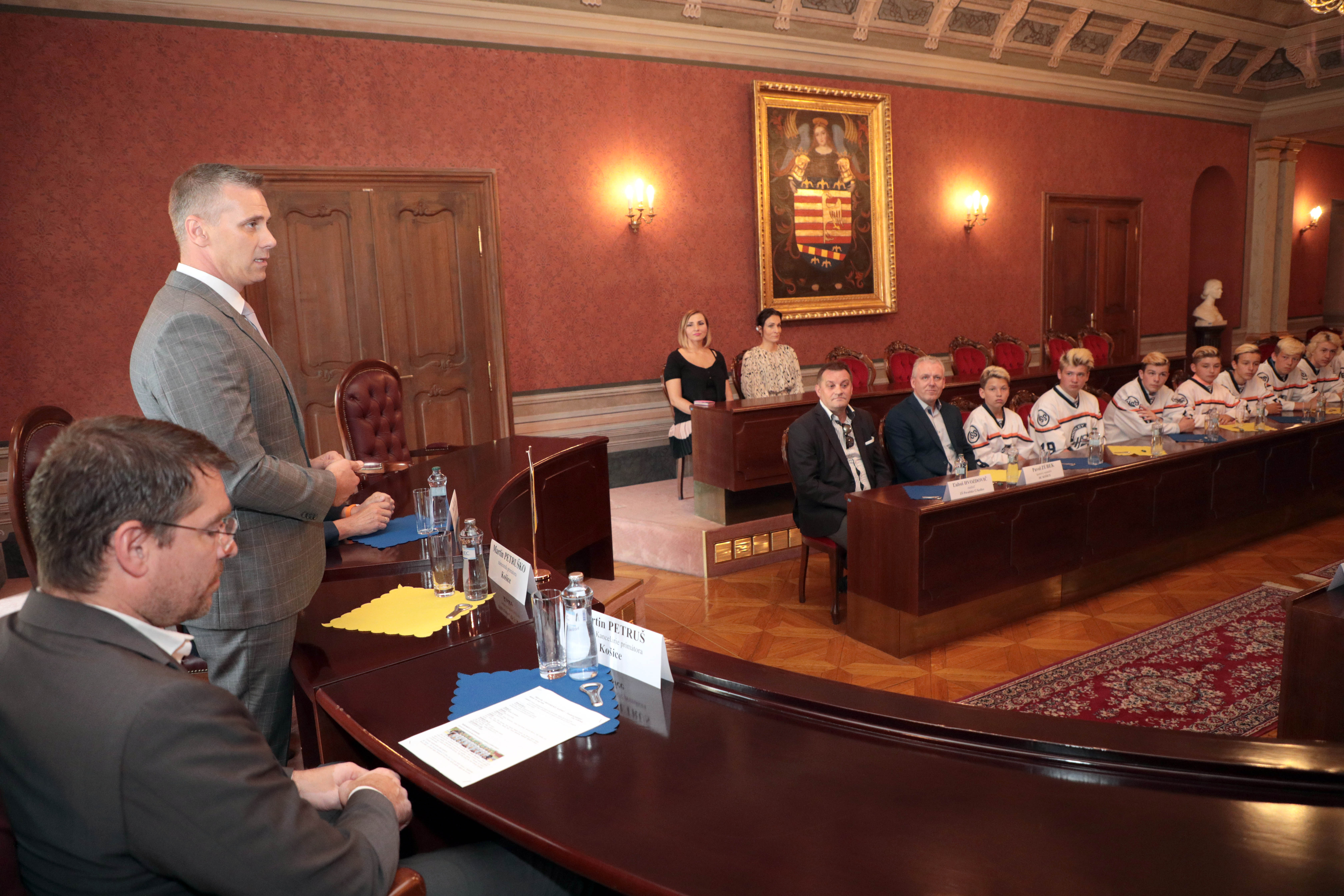 Našich starších žiakov, ktorí získali titul majstra Slovenska, dnes prijali predstavitelia mesta. Stalo sa tak na košickej radnici, kde ich privítal námestník primátora Martin Petruško, vedúci referátu športu a mládeže mestského magistrátu Ivan Šulek a vedúci kancelárie primátora a člen správnej rady HC Košice Martin Petruš.